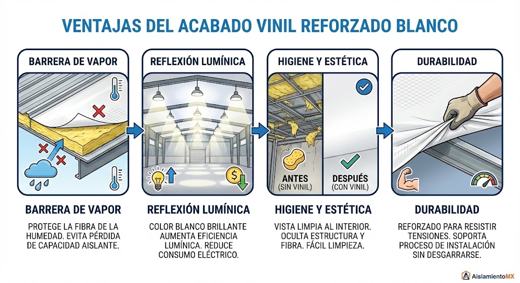 La Fibra de Vidrio MBI (Metal Building Insulation) de AislamientoMX es la solución líder para el control de temperatura y condensación en techumbres metálicas. Nuestra línea de stock está diseñada para ofrecer la máxima rapidez de instalación y un acabado interior estético y luminoso.